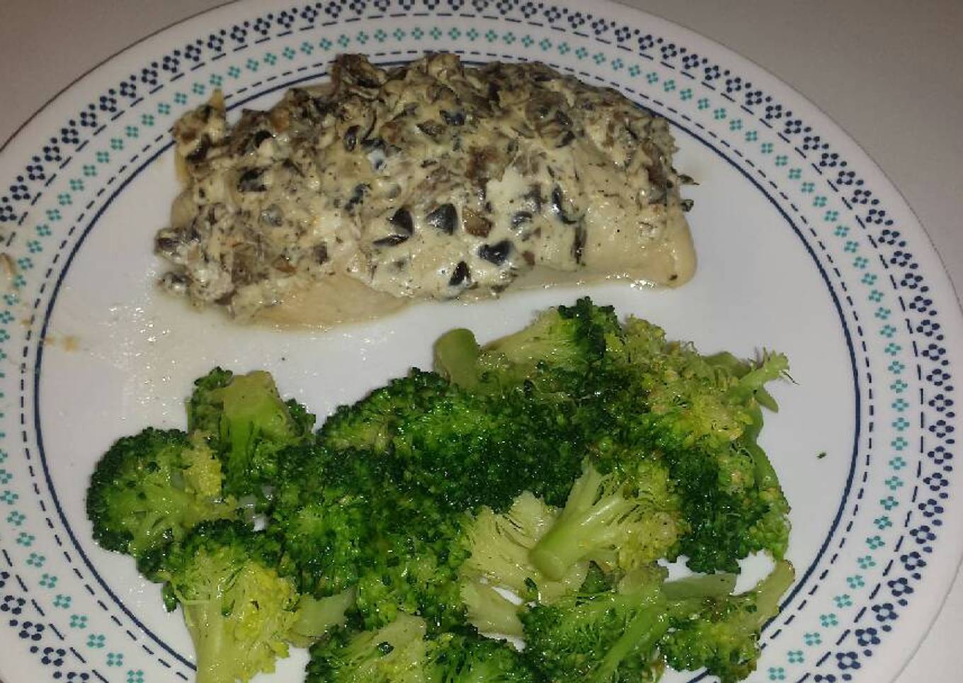 - Heat skillet with olive oil and butter. Sauté your veggies. (Mushroom, Black Olives, garlic). Season to taste with italian seasoning.